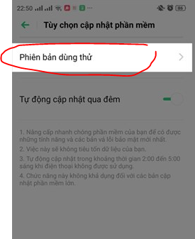 Bạn vào phần Cài đặt > Cập nhật phần mềm > Cài đặt > Phiên bản Beta. Lúc này hãy đăng nhập tài khoản OPPO của bạn vào để đăng ký trải nghiệm sớm ColorOS 7 do OPPO cung cấp.