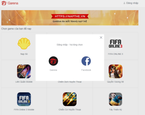 Hiện lên họp thoại, các bạn tiến hành đăng nhập bằng tài khoản Garena hoặc tài khoản Facebook.