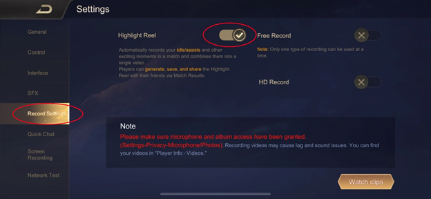 Step 2: At “Recording Settings”, turn on “Highlight Reel”