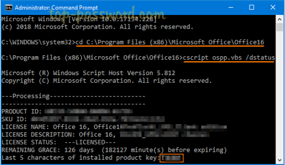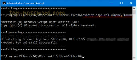 cscript ospp.vbs /unpkey:{last five characters of product key}